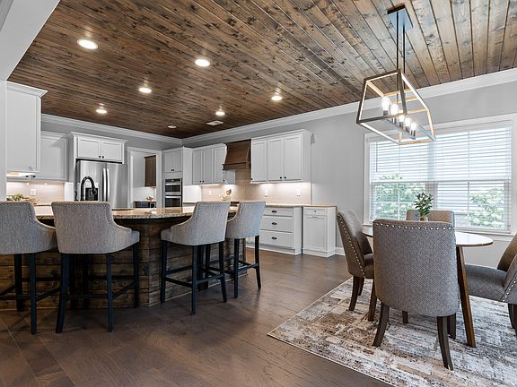 Enjoy four outdoor areas including a front porch with swing, screened-in porch, deck, and patio, perfect for relaxing, hosting friends, or soaking up the sunshine. Inside, the open floor plan flows from the great room with a floor-to-ceiling stone fireplace into the gourmet kitchen with two ovens, granite counters, soft-close cabinets, wood-plank ceiling, and a butler's pantry with wine fridge, ideal for holidays, large family meals, or entertaining in style.