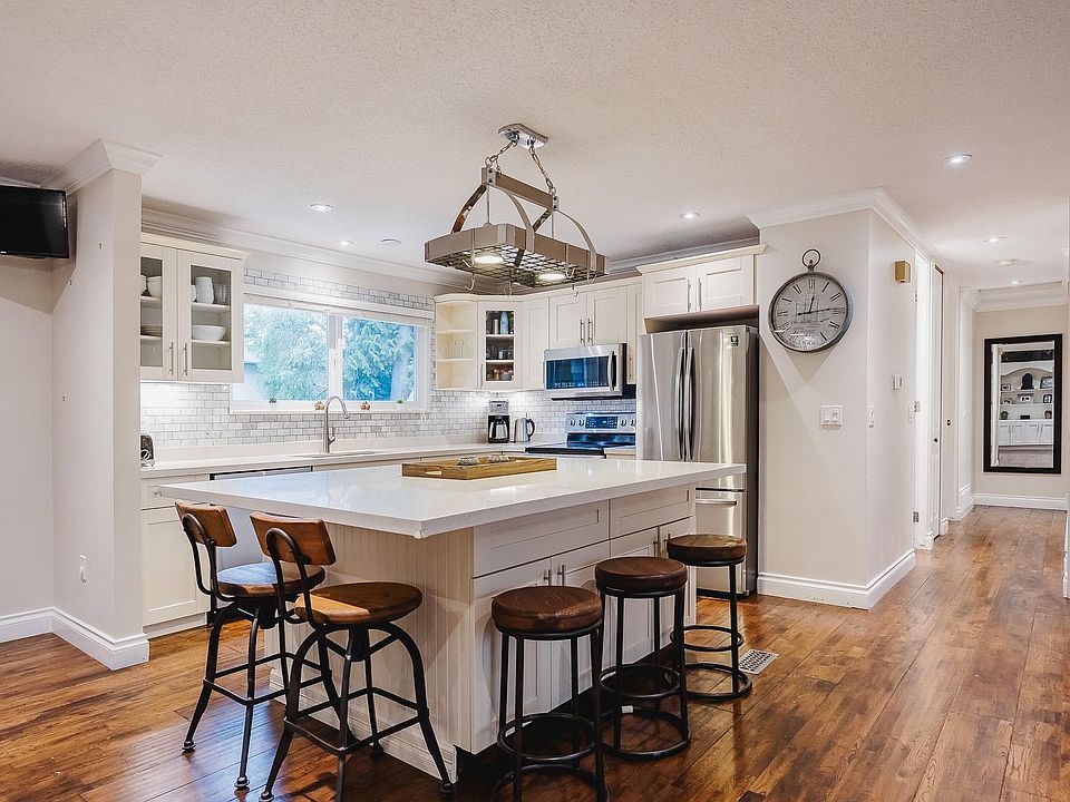 Stunning kitchenHardwood floorsStylish lightingAmple storageLandscaped backyardPrivate covered deckInsulated garage