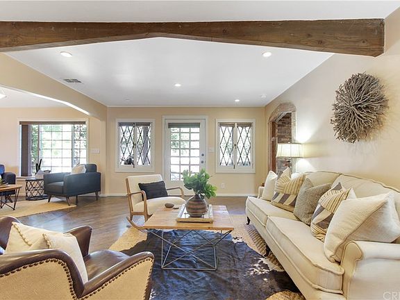 From the moment you step foot beyond the river rock wall and wood gate, you will be overtaken by the character, history and tranquility found throughout this 3 bedroom, 2 bath ranchette with a separate guest and tack room/office space. Enter through the glass paned door to the charming living room with hardwood flooring and a separate sitting area. The kitchen has been tastefully updated with custom cabinets, stainless steel appliances, stone flooring and quartz countertops, while still keeping the integrity of the homes appeal. Enveloped in original brick walls, the dining area easily flows from the living room to the kitchen. The charming master suite offers a brick accented nook and a gorgeous marble bathroom with oversized shower. The bunk house is the perfect space for guests with just over 400 square feet, its own kitchenette, ADA compliant bathroom, rock fireplace, several skylights, French doors and a separate bedroom. The tack room is a great place for storing your equestrian supplies or having a fantastic home office. The lush grounds with mature trees and plants is an entertainer's dream with meandering walkways, two large patio areas, a gazebo, 3 covered horse corrals and plenty of parking with a cement pad set behind the electric gate. Other unique features include a basement that offers ample space for storage, two laundry areas in the main house, a separate laundry room near the tack room and bunk house, central air and heat and a tankless water heater.