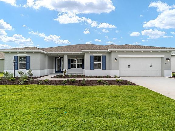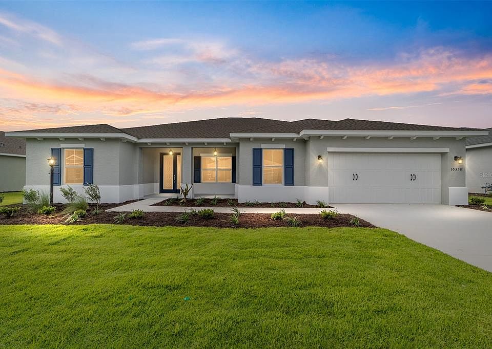 Beautiful Beatrix in Longleaf Ridge! This stunning new construction Beatrix model offers elegant design and modern comfort with 2 bedrooms, 2 bathrooms, a versatile flex space with a closet, and a 2-car garage with additional space for golf cart parking. With over 2,100 sq ft of open-concept living, this home is designed for both relaxation and entertaining. The gourmet kitchen features staggered cabinets with crown molding, stainless steel appliances, under-cabinet lighting, a large island with quartz countertops, and a spacious walk-in pantry. The dining area includes a sliding door leading to the screened lanai, along with three floor-to-ceiling windows with blinds overlooking the backyard. The open living area showcases a 4-panel sliding door that opens to the lanai—perfect for enjoying Florida’s indoor-outdoor lifestyle. The primary suite is a peaceful retreat featuring a 3-panel window overlooking the backyard and a luxurious ensuite with dual quartz vanities, a linen closet, and a large walk-in shower with a glass door and built-in bench. Bedroom 2 offers a spacious closet and is conveniently located near the guest bath with a quartz vanity and tiled tub/shower combination. Located in the highly sought-after Longleaf Ridge neighborhood within On Top of the World, this home combines high-end finishes, thoughtful design, and access to world-class amenities for the perfect blend of comfort and community living.