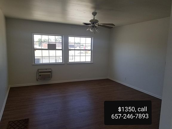CLEAN LARGE ONE BEDROOM APARTMENT UPSTAIRS. COMES WITH A 1 CAR GARAGE AND 1 PARKING SPACE OFF STREET. NEW FLOORS, FRESH PAINT. FRIDGE AND OVEN INCLUDED. NEW CEILING FANS IN ALL ROOMS. CALL PROPERTY MANAGER SIX FIVE SEVEN-TWO FOUR SIX-SEVEN EIGHT NINE THREE. $30 CREDIT CHECK. MAKE SURE TO CALL AND LEAVE A MESSAGE. DRE 01083399 .NO PETS, NO SMOKING. OWNER PAYS WATER, TRASH, GARDENER. TENANT PAYS ELECTRICITY, GAS, CABLE.