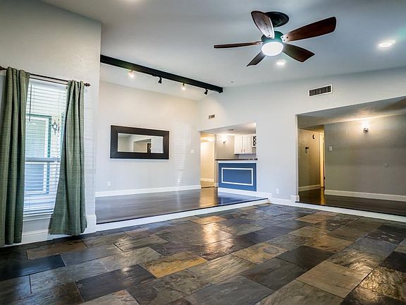 Beautifully updated move-in ready 4 BR-2 BA home shines w features galore! New AC 9-2019, new water heater 5-2020. Engineered wood & slate floors throughout, spacious floor plan w 2 LR, 2 DR + wet bar. Modern kitchen gleams w granite counters, SS appliances & ceiling height cabinets. Utility room also has granite counters & ceiling height cabinets. Cozy family room leads out to over-sized covered patio. Master suite w slate floors & walk-in shower. Guest bath also has slate floors. Fully enclosed yard w board-on-board cedar fence + rolling gate across covered driveway. All appliances stay. Richardson ISD, easy access to 635-75, 10mins to NorthPark-Galleria malls, 20mins to downtown. THIS GEM WON'T DISAPPOINT!