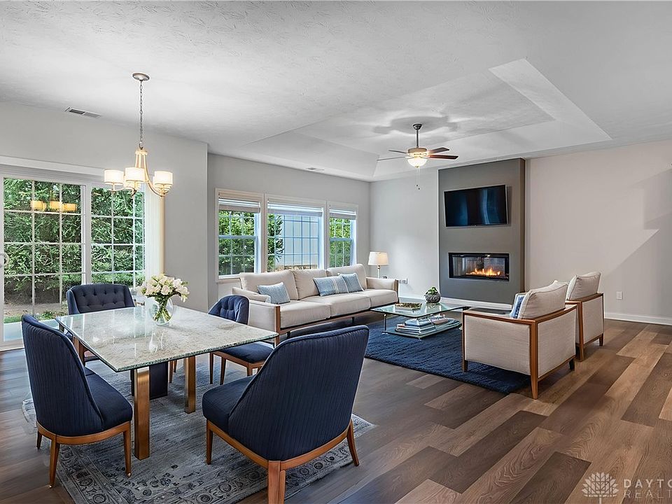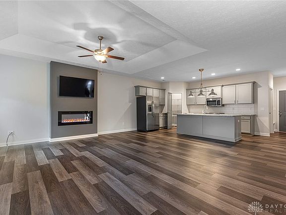 Fresh, polished, and carefully maintained, this home delivers the look of new construction—without the wait, hassle, or new build price. Every corner shows the kind of pride that makes it shine, from the wide-plank LVP floors to the brand-new carpet in the bedrooms. With 1,825 square feet all on one level, it’s bright, open, and finished in a way that feels both stylish and easy to live in. In the kitchen, dove-gray cabinets with crown molding pair with granite counters, a subway tile backsplash, and stainless appliances. A large island doubles as prep space and a casual gathering spot, while the walk-in pantry keeps everything organized. The open layout flows naturally into the dining area and living room, where tall 9-foot ceilings and expansive windows let in plenty of light. An electric fireplace creates a cozy centerpiece, and there’s more than enough room for a big sectional and entertainment setup. Glass doors lead out to a private patio, backed by a row of evergreens that provide a natural screen of greenery. It’s the perfect spot to step outside with a coffee or a book, while still enjoying the privacy that’s often hard to find in condo living. An oversized primary suite offers plenty of space for a full bedroom set and extras. Its bathroom includes double sinks, a walk-in shower with custom tile and bench, and a generous walk-in closet. Two additional bedrooms with fresh carpet give you options for guests, family, or a home office, and the second full bath features clean finishes and a glass-enclosed tub/shower combo. The attached two-car garage adds everyday convenience to a floor plan that balances style with practicality, while the home itself delivers the crisp, modern look of new construction paired with the comfort of a space that’s already been perfectly dialed in.