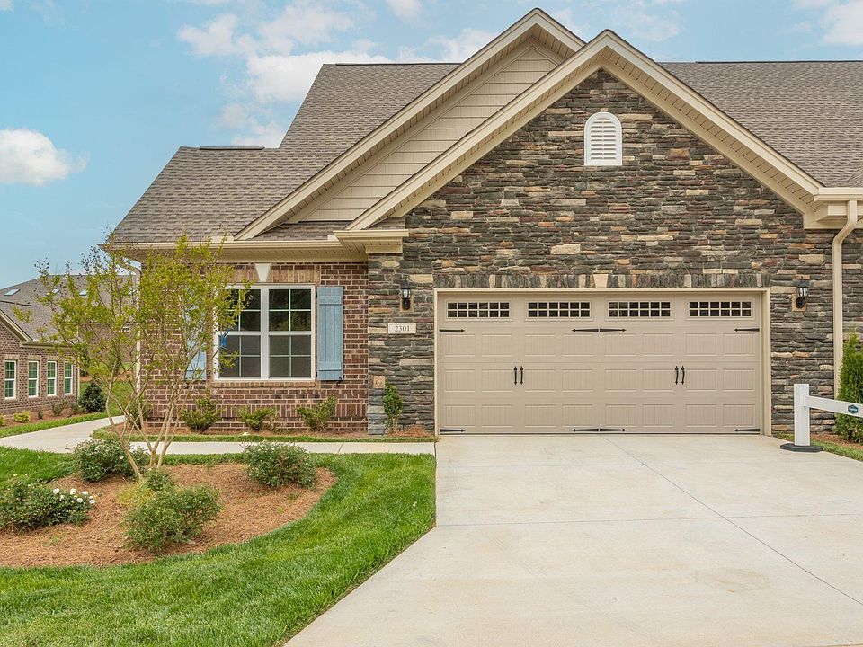 This two-story townhome holds the primary suite on the main level. The bedroom has a tray ceiling, a walk-in closet, and a private primary bathroom. The bathroom can be built with either a large walk-in shower and a water closet, or a separate shower and tub. The galley-style kitchen has a bar top that leads into the dining area and the living area. The living room has a gas log fireplace, which has the option to become a double-sided fireplace when adding the optional sunroom. The second bedroom and full bath are also located on the main level. Upstairs you will find a large loft with tons of natural light (optional 3rd bedroom), an office as well as a third full bathroom. This home feels quite spacious with over 2,000 square feet and has a two-car garage. *Photos are Representative*