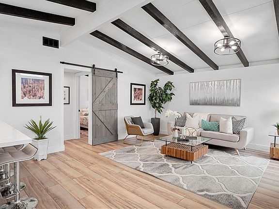 Welcome home to this fabulous designer home with 3 bedrooms and 2 bathroom with an open concept. Breathtaking open great room with kitchen, living room and dining all under a raised ceiling. Permitted sunroom converted to family living plus a converted garage used as office/home gym. As you enter the home you are greeted with open space and sliding barn door separating the bedrooms and living areas. This home includes new central heating and AC systems. Upgraded new garage doors, yoga room / Office space, huge sunroom with new heating system to host indoor parties, DUAL pane windows, fully irrigated landscaping with beautiful garden with drought-friendly throughout the large front and back yard for your kids or pet to run around. This home has new kitchen cabinets, a large kitchen island, bathrooms remodeled, new floors, stucco, and paint. The long driveway can accommodate everyone in the family with plenty of street parking. Backyard has a cute yet huge shed.
