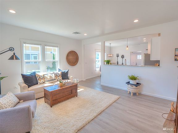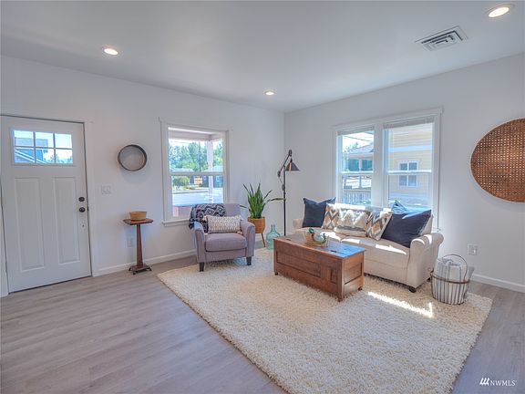 Adorable, fully remodeled, 3 bed, 1.75 bath, 1,280 SF home w/ primary suite is perfectly located in the heart of town! Completely updated down to the plumbing, electrical, flooring, insulation, siding, & windows. Luxury vinyl plank flooring throughout. Large living room adjacent to dining area. Kitchen w/ new, SS appliances. Full bath downstairs w/ granite vanity. Mud/coat room w/ back yard access. Primary bedroom up w/ private 3/4 bath attached & a lg. walk-in closet. 1-car detached garage w/ carport. 6,400 SF corner lot w/ alley access RV/Trailer parking is walking distance from downtown Enumclaw's shops, restaurants, & parks. Natural gas forced air furnace is A/C ready w/ coil. Commercial zoning w/ city approved use to residential.