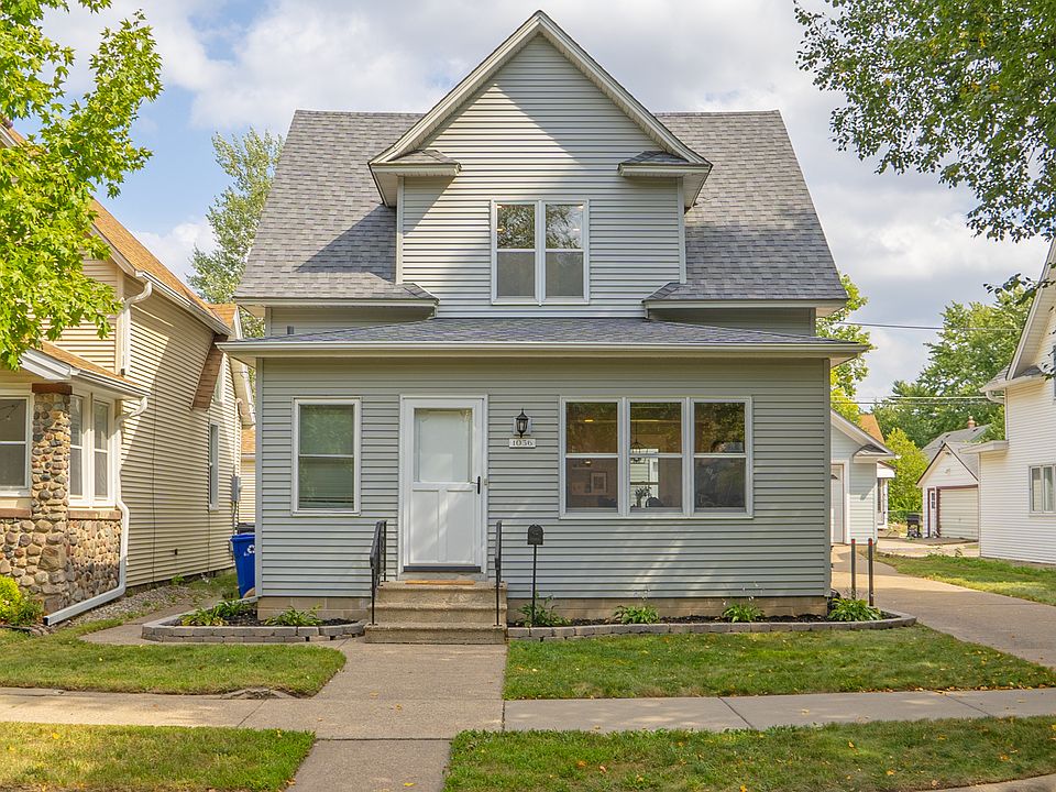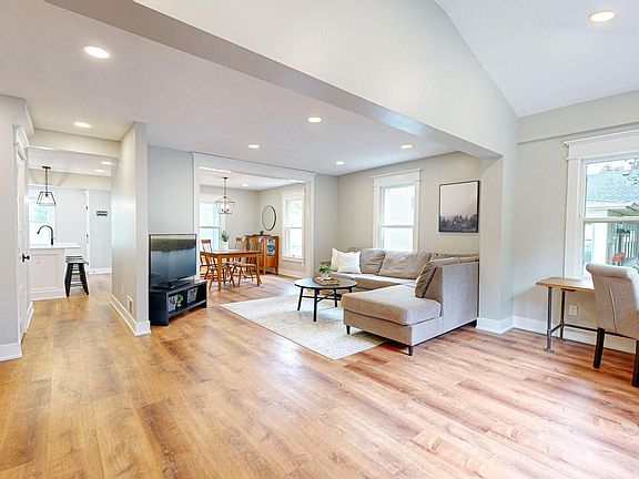 Incredible light-filled updated home in Como neighborhood. You'll love the up-to-date open main floor that flows seamlessly from the front door through living room, dining room, and kitchen. Home has been tenderly and tastefully updated to include new kitchen with walk-in pantry, center island, and cozy corner banquette. Stainless steel appliances and range hood, quartz countertops, glass backsplash and under-cabinet lighting make this kitchen a dream. Updated light fixtures, can lights and LVT flooring are main floor highlights, Unique to homes of this vintage is a half bath located on the main floor. Upstairs are three bedrooms with hardwood floors and an updated full bath. The oversized heated garage is perfect for woodworking to weight lifting and includes a generous loft space for additional storage. Neighborhood includes tennis courts across the street and convenient walk to the much-loved Como Park and all it offers!