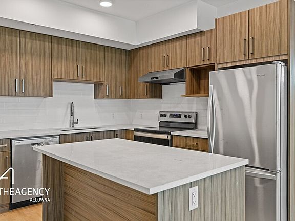 This brand new top floor condo with 2 bedrooms and 2 bathrooms is a must see. This modern condo boasts a functional layout, full-size appliances and in-suite laundry. The kitchen is designed with quartz stone countertops, sleek European-style cabinetry and stainless-steel appliances. Located in the heart of Kelowna's brewery district, a short walk away from cafes and shops downtown. One assigned underground parking spot is included, and pets will be considered.