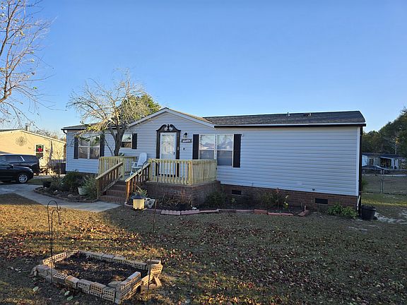 This Home is on a permanent foundation on .46 acre. Come sit on the porch overlooking the nicely landscaped front yard or enjoy your large 3 bedroom and 2 baths . . Spacious living room, beautiful kitchen. Recently installed LVP flooring in kitchen/dining. The owner's suit bathroom has vanity sink, linen cabinet and a shower. Large fenced back yard. This home has a side wood deck.