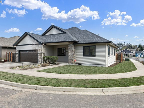 Stunning 2019 Anslow & DeGeneault Home in Osprey Park!This exceptional corner-lot home offers modern elegance and thoughtful design. Featuring a spacious open floor plan, the great room seamlessly flows into a gourmet kitchen with quartz countertops, custom cabinetry, a large island, stainless steel appliances, and a gas range—perfect for entertaining.The luxurious primary suite boasts a spa-inspired en suite with a walk-in tile shower, double sinks, and a generous walk-in closet. A large office with custom built-ins provides the ideal workspace. Enjoy wonderful separation of bedrooms, ensuring privacy and comfort for all. Throughout the home, white oak flooring and custom details add warmth and sophistication. Enjoy outdoor living on the covered patio, overlooking the easy-care, fenced yard with new grass and a sprinkler system. An oversized garage provides ample storage.Prime location! Just minutes from Autzen Stadium and the Willamette River, with miles of scenic bike paths and trails for outdoor enthusiasts.Don’t miss this incredible opportunity—schedule your showing today!