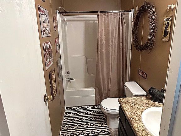 3 bed 2 bath mobile home on permanent foundation. 620 sq ft of porches and 2 outbuildings.