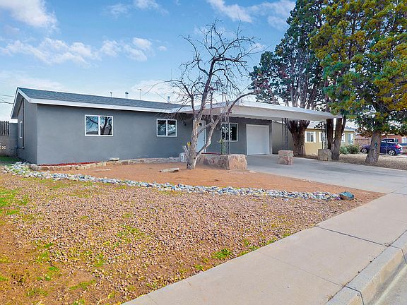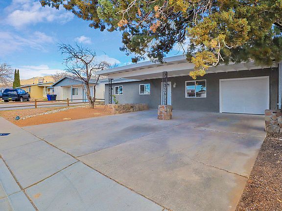 This gorgeous 3 bedroom, 2 bathroom property in the NE Heights has been completely renovated from top to bottom and now includes refrigerated AC. Boasting all new windows, new laminate wood flooring, and fresh paint throughout, it shines! The kitchen and bathrooms feature brand-new cabinets, tile surround showers, and solid surface counters. The open floorplan is perfect for entertaining with a large living room that opens into the dining room and kitchen. The primary bedroom includes a sitting area or optional office. This immaculate home won't last long!