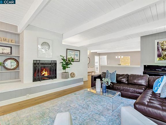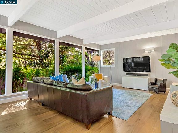 Mid-century beauty on a level .57 acre. Tastefully updated, the living room is stunning with a wall of glass, ship lap ceiling and wood burning fireplace. Adjacent to the living room is a dining area that is perfect for hosting a dinner party. The light and bright kitchen provides access to the patio and grass area. You will enjoy entertaining in the backyard with a large island, built-in BBQ, outdoor TV, large level lawn area and play structure. The master bedroom is spacious with a remodeled bathroom and plenty of closet space. Oak Knoll has been updated with remodeled bathrooms, new hardwood floors and laundry room. You will love this stylish home, the convenience to the freeway and access to Lafayette's award-winning schools.