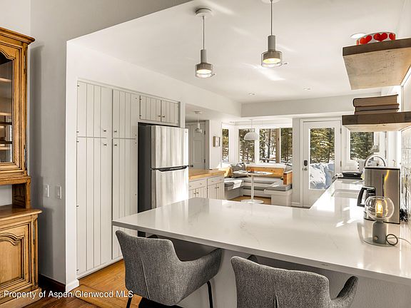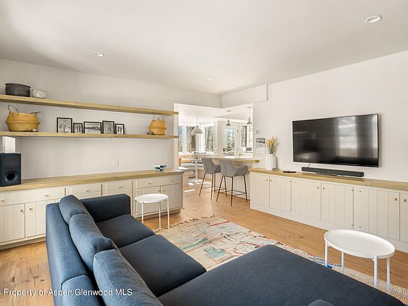 Available as a three bedroom long term June 2026 at $22,000/month plus utilities for 12+ months! Also available short term for $30,000/month for March 2025! Relax in this freshly revamped midcentury modern home on Red Mountain that encompasses the charm of nostalgic Aspen with the convenience of newly updated interiors including new kitchen, furnishings, lighting and baths (new steam shower). Jaw-dropping Aspen Mountain views create the backdrop in the winter, enjoy the deck space year round for apres ski by the fire pit and for summer dinners in the fresh mountain air. Vaulted ceilings in the great room paired with the open floor plan make this three bedroom home live large. Gather around the wood burning fireplace, curl up with a book, host a dinner party, hibernate or work in the den. All the bedrooms and living areas are above grade, the laundry room and storage are located on the lower level.