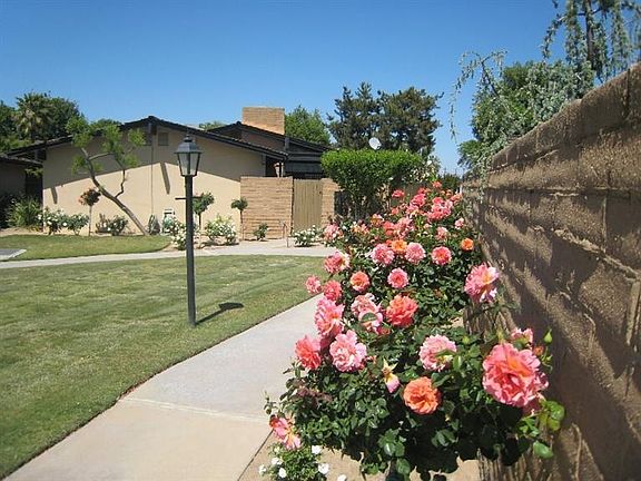 Luxury Sunnyside Court PUD near Sunnyside Country Club. Only 14 homes in an adult complex. Includes large pool w/entertainment area just outside rear patio gate. Private front gated courtyard, 2 covered patios in back, lush landscape, & rocked dry well. Very spacious 3/2 single level floor plan. Huge LR & formal DR area w/vaulted ceilings, beautiful hardwood floor in entry & master den, adobe brick frplc & secluded wet bar off DR. Kitchen has tile counters & flooring, skylight, breakfast nook w/built-in phone/computer desk & glass door to side yard patio. Plantation shutters or custom drapery, fans in most rms, water softener. Large MBR suite features large walk-in closet, dressing area w/sit-down vanity, & private entrance to backyard patio. Utility rm w/sink. Oversized garage w/3 deep storage closets. These homes rarely come on the market, so now is your opportunity! over 55 great community