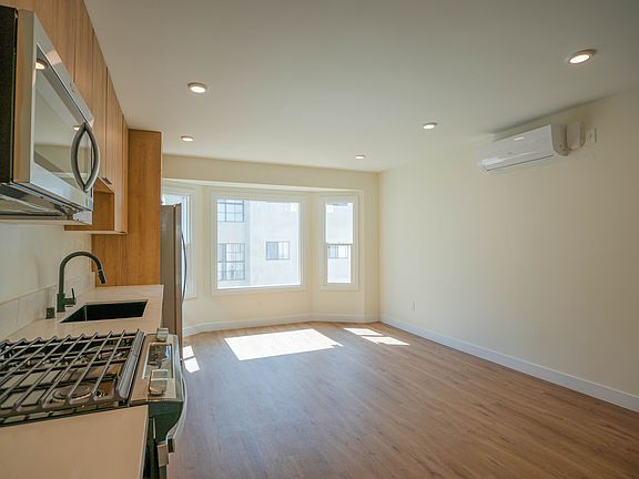 From the moment you step inside, you'll notice the bright and open layout with large windows that fill the space with natural light. The interiors feature Mid-Century inspired finishes with warm, wide plank floors that create a welcoming and modern feel. The kitchen stands out with brand new stainless steel appliances including a gas stove, refrigerator, dishwasher, and microwave, paired with sleek quartz countertops and European style cabinetry with timeless black finishes. Whether you love cooking at home or simply want a modern space that feels stylish and easy to enjoy, this kitchen delivers. The living area flows seamlessly, perfect for relaxing or entertaining, with new finishes throughout that make the home feel warm and inviting. And because everything in the unit is brand new, from the appliances to the AC, plumbing, electrical, windows, and finishes, you'll be the very first to experience it all.