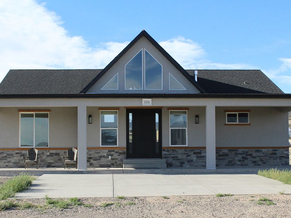 Moonstone Lodge. Newly constructed home located Southwest of Bicknell amidst the massive Boulder Mountain, and the red rocks of Sunglow with farm fields in the forefront. This elegantly designed home of quality construction has vaulted ceilings, granite countertops, custom cabinetry, and luxury vinyl plank flooring. All new furnishings included. The home is light-filled and airy with an expansive, seamless living space from the kitchen to the living room, and dining in between. The kitchen is stunning, as well as functional with gorgeous cabinetry, granite countertops, a large island and plentiful pantry space. The main floor also consists of the master suite, two secondary bedrooms, a bathroom and utility room. The master suite is spacious, with two walk-in closets and open to the master bath, complete with a separate tub/shower and full-length vanity. The unfinished lower level, with its own access, has the potential to double the size of the home, or may be suitable for a long or short-term rental for extra income. The property is currently a vacation rental. This incredible property is off the beaten path where you can enjoy the quiet country, dark skies, and fantastic views. The location is ideal for exploring with its proximity to Boulder Mountain and Capitol Reef. 1036 West Chads Road, Bicknell.