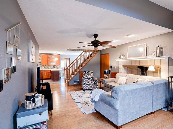 Nestled on just over 5 acres is this impeccable 1 ½ story in-town acreage with a large fenced in pasture area ideal for 4H animals or a small hobby farm. A functional and open floor plan greets you when you enter the home. Quaint and cozy sitting area or 1st floor family room that has a breath-taking view of the city park. Inviting great room with a skylight to let in the natural sunlight. Gleaming bamboo floors in the great room and sitting area/1st floor family room area. Spacious remodeled eat-in kitchen with upgraded cabinetry to include soft closing drawers/doors, elegant frosted glass doors, under cabinet lighting, glass tile backsplash, breakfast bar, trendy lighting, and a hidden walk-in pantry located under the steps. Spacious 1st floor primary bedroom that features his/her closets, newer LVP flooring, and a private bathroom. Beautiful open staircase leading to the upper level which features two generous sized bedrooms with walk-in closets and a full bathroom. Enjoy the serene private views from the 4-seasons sunroom that boasts a soaring high ceiling. Large 1st floor mudroom loaded with storage and built-ins with a separate entrance to the backyard. Newer HVAC system installed 2018. Some Marvin windows and some solid interior doors. Oversized heated 2-car garage with newer modern-style doors with side glass windows and tons of storage space.
