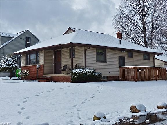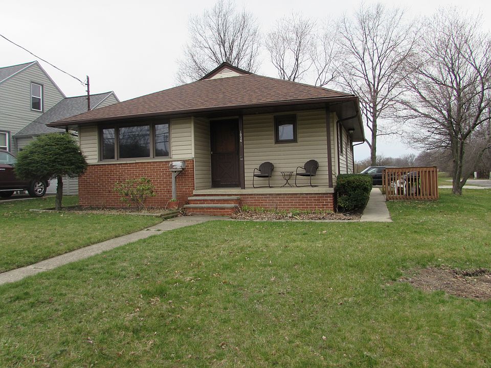 Brick and vinyl ranch with full finished basement, large carpeted rec room with oak wet bar & bar tap, glass block windows, laundry area with washer/dryer (2016), storage room plus separate shower & toilet. Upstairs has 3 carpeted bedrooms with hardwood below, living room with new carpet in 2017, eat in kitchen with all appliances, much storage, 14' covered front porch, side patio, 2 car det. garage, 6 year old roof, storage shed, driveway on non-thru street, home warranty