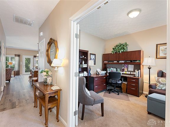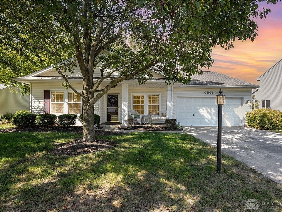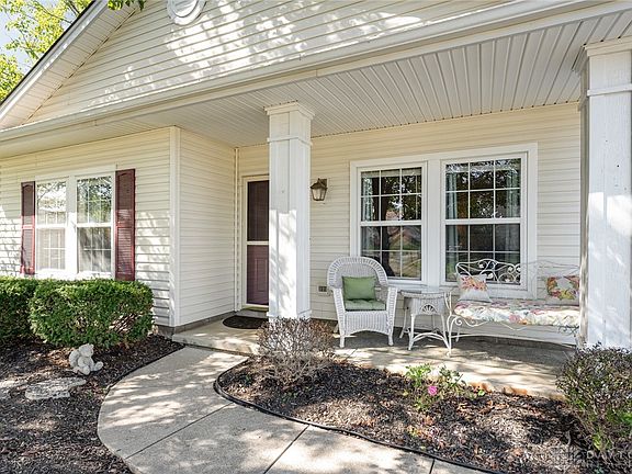 Welcome home to this gorgeous ranch in Crain's Run. This home was the model home when the neighborhood was built and has been enjoyed and well maintained by single owner since. Enjoy the benefits of the open concept and 9' high ceilings throughout. Large windows offer plenty of natural light. Split floor plan provides privacy to the large primary bedroom with walk-in closet and space for a sitting area. Enjoy the convenient ensuite bathroom offering walk-in shower and jetted tub. The kitchen is open to the dining space and family room. A pantry keeps your favorite foods organized and behind doors. Two more bedrooms located on the opposite side of the house share a hall bathroom. A den/flex space near the front door is great for a home office, hobby space or whatever you desire. Front porch and rear patio for relaxing. Mature trees provide privacy. 2 car garage with room for storage. Shelving conveys!