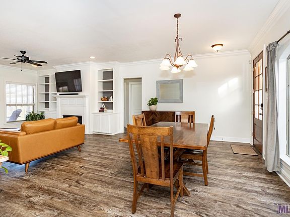 Charming, updated, move-in ready home in popular Springlake! This home has been renovated with new wood flooring throughout (no carpet), interior paint, granite counters in kitchen, and some bathroom updates. The open floor plan features a spacious living area with fireplace and built-ins, dining room and kitchen with great cabinet space and storage. The master suite features an en-suite bathroom with dual vanities, soaking tub, shower and large walk-in closet. The second bedroom area is on the opposite side of home for privacy. Don’t miss the office off the kitchen with built-in desk and shelving. The back yard has a comfortable patio area and is fully fenced with a fig tree in the corner that blooms in the spring. There is an open grass area behind the home offering extra privacy with no direct rear neighbor. New roof installed in 2022 and newer hot water heater. Springlake residents enjoy a community pool, clubhouse, basketball and tennis courts and lakes throughout. Home is in Flood Zone X. Great location convenient to LSU, Highland and Perkins Rd, shopping and popular restaurants.