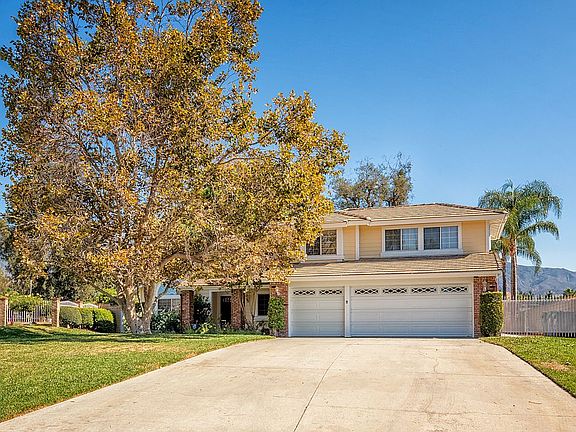 This beautiful Rancho Cucamonga pool home is located on over 1/2 acre! Very private and set apart from the neighbors, it is adjacent to equestrian trails/walking path. The owners have taken excellent care of this home, it is in perfect, turn-key condition. Double door entry, kitchen w/ granite counter tops & island, large pantry & breakfast nook w/ bay windows overlooking a crystal clear pool & spa, as well as a large backyard area. The backyard not only boasts pool & spa, but also landscaping, with a large back portion of mature fruit trees such as avocado & lemon. Formal living room & dining room, as well as a family room w/ fireplace. Downstairs is one complete bathroom, laundry room and bedroom/office. Upstairs is the large master suite including private bathroom w/ shower & tub, a very nice walk-in closet, & a private deck overlooking the backyard- perfect for relaxing in the morning with your coffee, or evening for cocktail hour. The outside of the home has been freshly painted & also has it's own matching tool or garden shed. Another great feature is the large driveway with plenty of room for an RV or other toys, and 3 car garage. The home and property are very private and the well established trees add shade in parts of the front and back yard.