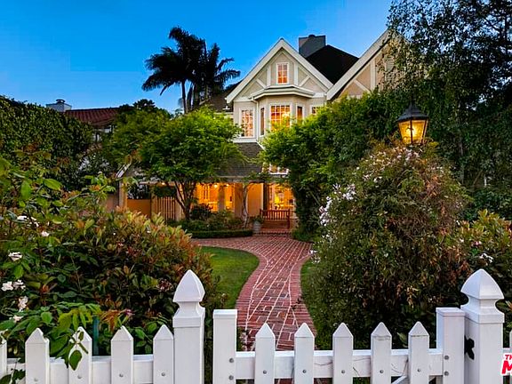 Rare opportunity - storybook home nestled on picturesque Glenbarr, one of Cheviot Hills finest streets. Lushly landscaped enchanting front garden, brick-framed driveway, walkway & front porch offer delightful curb appeal. An arched doorway welcomes you in - the first glimpse is a classically elegant living room with high coffered ceilings, fireplace, and formal dining room, as well as a cozy office with bay windows & front garden views. The versatile 2 sty floor plan offers 3 bedrooms up + 1 down. The remodeled 'Cook's kitchen featuring custom cabinetry, walk-in pantry, granite counters, 3 sinks + ss appliances is open to the family "Great Room". French doors open to an exotic wood deck & magical back yard with firepit + outdoor kitchen. Upstairs, the romantic, light-filled master has high vaulted/beamed ceilings and his/hers walk-in closets. Luxe master bath with skylight, double sinks +jacuzzi tub. Tasteful + refined - impeccably maintained. A distinctive & whimsical property.