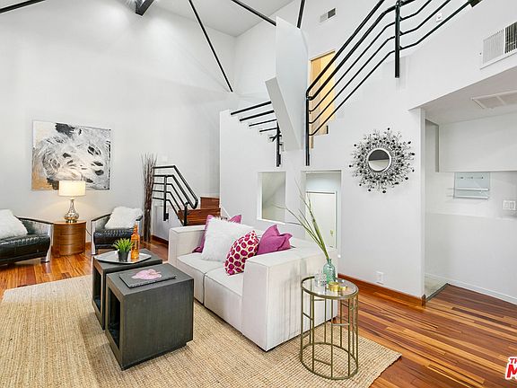 Contemporary unit with an open floor plan with soaring ceilings! Located in a quiet 7-unit building with only one shared wall. This 2bed + loft, 1.5 bath is front-facing tri-level unit filled with natural light and includes a spacious 2-story living room with hardwood floors and fireplace. From the kitchen, you can step out onto your private balcony. The upstairs loft is perfect for use as a bedroom, office space, or a kids play area. On the lower level, you will find your master bedroom with a roomy walk-in closet and fireplace, a second bedroom with built-ins and a closet, plus a full-size laundry area. Renovated unit with stainless steel appliances and stone countertops in kitchen, and a new roof. HOA dues cover water, trash, plus earthquake insurance. Located near Pico shops, Rancho Park Golf Course, Cheviot Hills Park, and future Google offices at Westwood Pavilion! In Westwood Charter School district