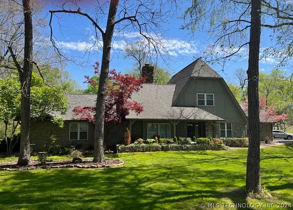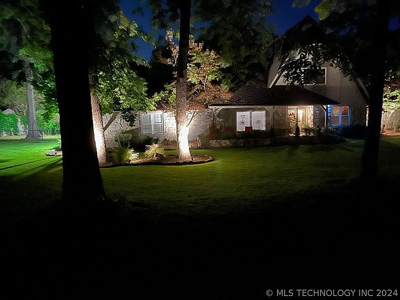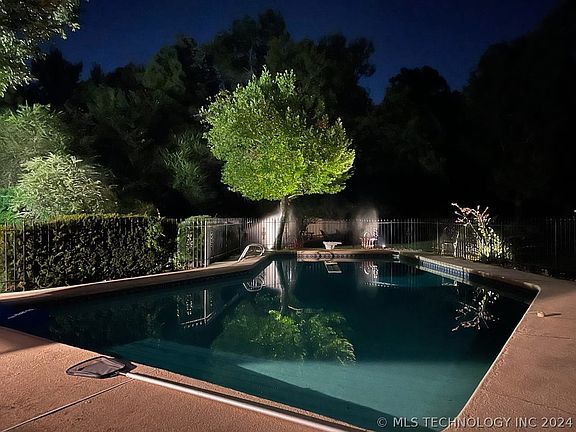 1.3 Acre estate in South Tulsa, 4 bed/2 bath including whirlpool, new paint inside/outside and flooring throughout, balcony w/great view of greenbelt which will not be developed, lovely treed lot, appliances stay, fenced pool, vaulted great room (billiards table stays), wet bar, sprinkler system, storage shed. Additional updates include, wooden garage door, landscape uplighting, camera system, near shopping and Creek Turnpike.