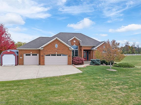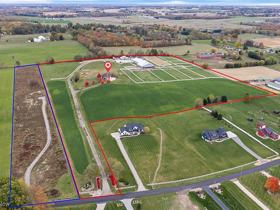 Welcome to this distinguished, turnkey equestrian estate offering a rare blend of luxury living and professionally designed horse facilities. The completely updated 3 bed, 4 bath, all-brick residence spans over 3,700 square feet and offers a fully finished walk-out basement. New, high-end finishes define every space, including an impressive and fully remodeled chef’s kitchen with a hidden butler’s pantry, an elegant primary suite with a grand walk-in closet room, and a private deck capturing sweeping views of the farm. A beautiful stone natural gas fireplace and soaring ceilings accentuate the main living area, with incredible hardwood floors throughout the entire first floor. The equestrian amenities are exceptional and meticulously maintained. A 70x140' heated indoor riding arena, expansive 100x300' outdoor arena, and professionally designed mountain trail course create endless training opportunities. The main barn offers 27 indoor stalls, each equipped with automatic waterers and stall mats, plus heated wash stalls, 3 heated tack rooms, multiple feed rooms, and heated bathroom. An additional 8 exterior shed-row stalls and numerous safely fenced pastures and all-weather turnouts—all with automatic waterers—ensure optimal functionality and horse safety. The property also includes 10+ acres of alfalfa/timothy hay fields, enhancing operational efficiency, and a 1 bedroom/1 bathroom apartment, ideal for farm help or trainer accommodations. Additional details include RV parking and hookup, workshop area, EV charging station, dog washing station, generators, free internet, hay storage for 2400+ bales, additional 5 acre lot option, and so much more! Every element of this property has been thoughtfully streamlined for comfort and performance. From its breathtaking views to its premium infrastructure, this estate stands among the NE Ohio's most complete and refined equestrian offerings. A truly unparalleled opportunity for the discerning horse professional or enthusiast.