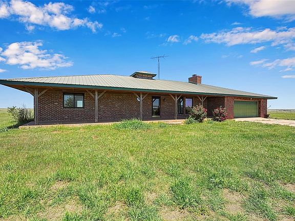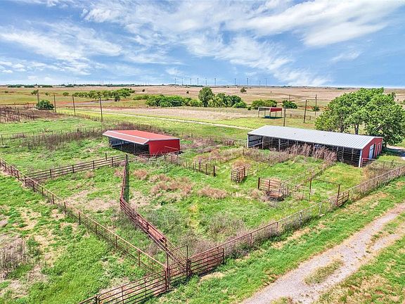 Country home on 9.43 acres in Western Oklahoma. Large three bedroom, three bath home with many interior updates. Entering the home you will find a spacious living area with a beautiful rock fireplace wall. Updated can lighting throughout all the home as well as Pella windows. Just off the living area you enter the dining and kitchen area. This dream kitchen has tons of counter space and unbelievable storage. The primary bedroom features a oversized closet and private bath with tiled walk in shower plus more storage!