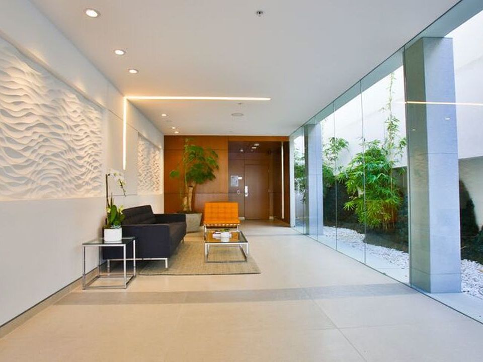 Completely RENOVATED!! 10366 Wilshire is a Mid-century modern masterpiece located on the well sought after Wilshire Corridor. This gorgeous multi level townhouse affords Open flow floor plans with extra LARGE spaces, tons of light with Fleetwood - double Pane sliding glass doors and windows, clean sleek lines and modern touches inside and out. Finishes are all modern, yet warm, neutral, and harmonious. Modern solid bamboo floors, Imported European tiles by PORCELANOSA, Caesar stone counter tops, European stainless steel appliancesBosch dishwasher, Bertazzoni range oven. Lavish Master bathroom with huge sauna. Italian LCD monitoring system affords tenants to identify guest before allowing access into the building. Beautifully designed modern lobby and hallways featuring tiles, custom crafted wood, glass, stainless steel and Italian furniture. Designer modern landscaping and lighting.