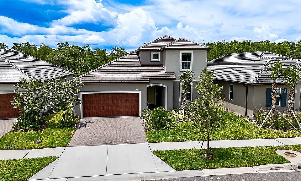 Closer to the Fun in Phase One! Better Than New w/Over $36,000 in Upgrades this home has 2,366 sq. ft. home offering a triple split plan w/3 bedrooms & 3 full bathrooms, bonus rooms on 1st and 2nd floor, and 3-car tandem garage. Over $36,000 in owner upgrades make this home truly better than new! Exterior highlights include no rear neighbors, home backs up to CDD owned wooded land & ponds, paver driveway, wood look garage door, tile roof, designer accents & trim, designer landscaping, covered paver entryway w/can lighting, 19x14 rear screened in patio w/side privacy & fan prewire, fences are allowed. Interior highlights include double pane impact windows, crown molding in the main living areas & owner’s suite, & lots of stone look plank tile! The owner added the following items since building: automated blackout shades in owner’s retreat, family room, & breakfast nook windows; whole house water softener; & alarm system. There are cabinets in the laundry room and crown molding downstairs. Kitchen highlights include island w/sink, lots of storage, & power; closet pantry for added convenience & storage; staggered 42” upper cabinets w/undercabinet lighting; quartz countertops; brushed nickel pulls; can lighting; crown molding; eating area large enough for a grand table so the flex space can be dedicated to another purpose. The owner added the following items since building: kitchen backsplash, BRAND NEW FULL SUITE OF KITCHENAID APPLIANCES! Livingroom highlights include can lighting, crown molding, ceiling fan, & sliders to huge rear patio & great views of the ponds & wooded area. The owner added the following items since building: four Surround sound speakers in ceiling in livingroom: Origin Acoustics Director D65 speakers are fully pivoting 2-way speakers; & additional can lighting. Owner’s retreat highlights include crown molding, can lighting, ceiling fan, & great views of the ponds & wooded area. The owner added the following items since building: additional can lighting. The bathroom highlights include large walk-in closet, quartz countertops w/dual sinks, sitting vanity, & walk in shower w/seating, a niche, brushed nickel pulls, & glass doors. Downstairs layout has foyer, welcome home center/desk, 3 car tandem garage, owner’s Suite, livingroom, bedroom 2, full guest bathroom, interior laundry room, kitchen, dining area in kitchen, office/Den/Dining Area/Flex Room, & 19x14 rear screened in patio w/side privacy & fan prewire. Upstairs layout has bedroom 3, 19x14 loft (flex space), & full bathroom. Community clubhouse highlights include an awe inspiring impact to the appearance of the neighborhood; covered portico drop off area; amazing resort style pool area w/beach style entry area, lap lanes, plenty of deck space & chairs, covered areas to avoid sun exposure; 2 full restaurant/bars – one inside & one overlooking the pool area; billiards room w/television; aerobics/fitness mirrored studio w/various equipment; huge fitness room w/advanced workout equipment; card/gaming room w/library; huge event hall w/stage; business workstations w/computers & a printer; shuffleboard; pickleball; & bocce ball. Additionally, the neighborhood is golf cart friendly & has lots of walking trails & other highlights such as plans for a future lagoon! Fees includes lawn, bushes and tree maintenance, common area maintenance, irrigation, mulch yearly, 2 GB internet, clubhouse/pool maintenance, and exterior home painting!