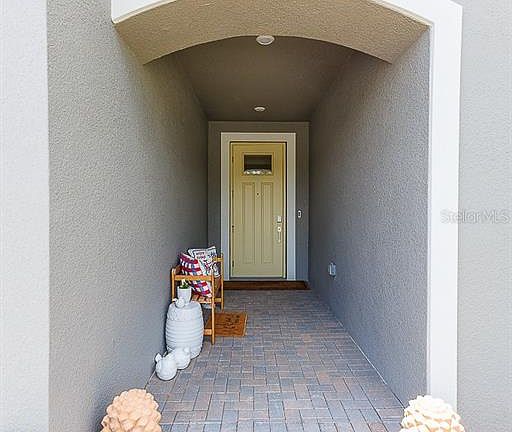 Quartz countertopsCeiling fanStone look plank tileWhole house water softenerAlarm systemCovered paver entrywayAutomated blackout shades