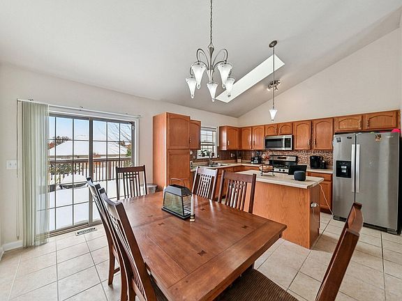 Home Sweet Home ~ Set in a peaceful, well-kept neighborhood, this impressive 5-bedroom, 3-bath residence offers exceptional space, comfort, and versatility across two thoughtfully designed levels. Upon entering, you're greeted by an expansive, light-filled living area with vaulted ceilings and a seamless flow into the dining space and kitchen. The eat-in kitchen features warm oak cabinetry, stainless steel appliances, a center island, and a bright skylight that enhances the airy feel. Sliding glass doors open to a spacious deck--perfect for outdoor dining and relaxing. The main level offers three generously sized bedrooms, including a private primary suite with vaulted ceilings, hardwood floors, a walk-in closet, and an en-suite bath complete with a soaking tub, separate shower, and dual-sink vanity. The fully finished lower level expands your living space with two additional bedrooms, a bathroom, and a large family room anchored by a gas fireplace. A standout feature of this home is the spacious 3-car garage, providing ample room for vehicles, storage, and equipment. With beautiful curb appeal, mature landscaping, and convenient proximity to parks, dining, shopping, and major roadways, this property offers an ideal blend of comfort and convenience.