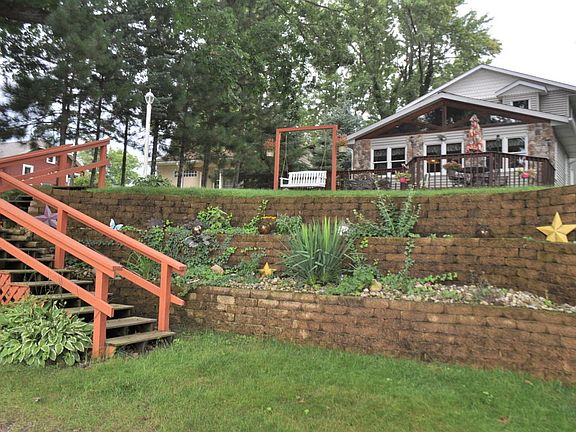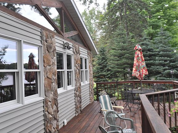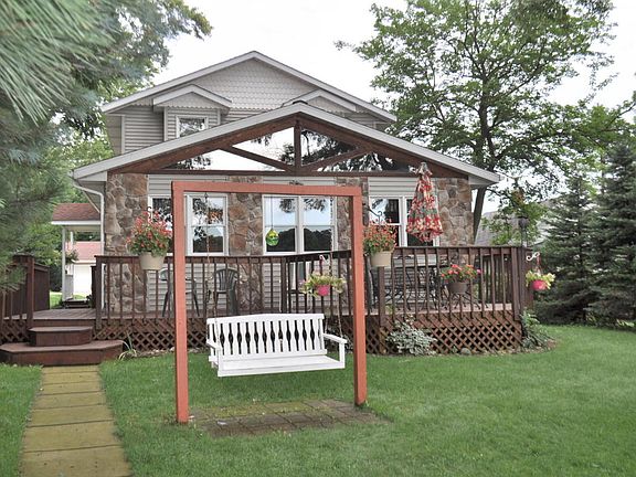 Waterfront living at it's best! Enjoy this lovely 4 BR, 2 BA home on All Sports Harwood Lake with an open concept living area that features a beautiful stone fireplace in the great room with wood cathedral ceilings, a kitchen with an island and snack bar, separate dining room perfect for family gatherings and entertaining. A partial basement for use as storage and shelter. Nice deck overlooks the lake, and the back yard sports woods and a 3 car garage plus a separate one stall used as a workshop. This home features Anderson windows, an irrigation system, has ML laundry and ML bedroom/den. Awesome waterfront views throughout the home. Harwood Lake is a 122 acre spring fed lake with very clean water that boasts some of the best fishing around!