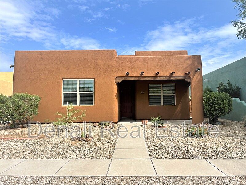 No Application Fees! 3 bedroom, 2 bathroom single level Tucson home located in Civano. This open floor plan home has 10 ceilings throughout, tile flooring with no carpeting, two-tone neutral paint and ceiling fans in each room. Large open living room with wood being ceiling and separate family room. Larger kitchen features extended countertop, breakfast bar, upgraded cabinets, electric range, stove top microwave, dishwasher and refrigerator. Spacious primary suite with walk-in closet and attached private bath with larger tub. Washing machine and dryer are included and two car garage offers plenty of parking and storage. Great backyard with covered patio, easy to maintain desert landscaping fruit trees, grapevines and garden area. Very nice community amenities including community pool, childrens playground and greenbelt areas.