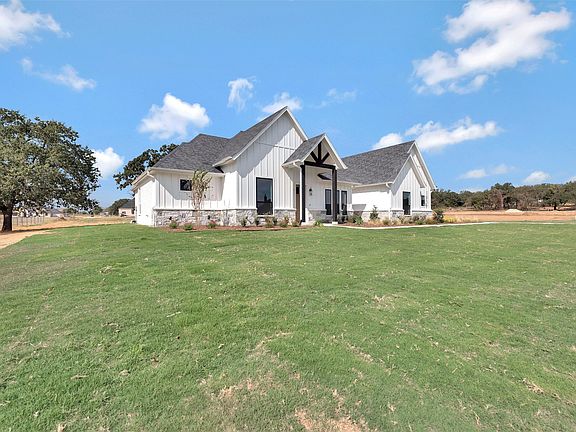 Introducing the Cleburne – a fresh new floor plan from Byron G Custom Homes, located in the brand-new Arbor Vista community! Set on a full acre with no HOA, this thoughtfully designed 3-bedroom, 2-bath home offers 2,196 square feet of well-appointed space, plus two living areas, a dedicated office that could be used as an additional bedroom, and a generous back porch to enjoy your surroundings. From the moment you arrive, you’ll notice the elevated style—white board and batten with stunning stone exterior, black windows, and oversized garage doors make a bold first impression. Inside, the coffered ceilings, quartz countertops, custom cabinetry, and designer trim and doors reflect quality at every turn. The open-concept kitchen features an island and GE electric appliances, while the spa-like primary bath includes a freestanding tub and spacious separate shower. Other highlights include a spray-foam insulated garage, engineered foundation, a full landscaping and irrigation package, and a large utility room with built-in sink. Estimated completion: Secure your spot in Arbor Vista today and be among the first to call this stunning new community home!