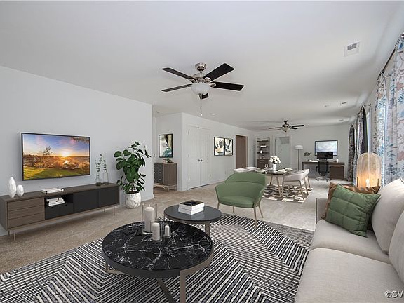 Sitting on 5 beautiful acres with the possibility of being subdivided OR space to build your dream home. Just minutes from Downtown Richmond, this property offers a convenient location to dine at restaurants and access to Osborne Boat Landing. The MOVE-IN READY living space features 1800 Square Feet with a spacious dining area in the kitchen which also features durable Vinyl Plank Flooring, ALL Appliances, Granite Counters, Lazy Susan corner cupboards, and pantry. Adjacent to the kitchen is a utility room equipped with a washer, dryer, chest freezer and half bath. The Bedroom is spacious and features a walk-in closet and adjoining full bathroom with double vanities, separate tub and shower. Throughout the living space, NEW carpet and FRESH Paint have been applied. The 3600 SF conditioned garage has an RV Bay featuring a 10,000 lb lift, plus three bays able to accommodate 9 vehicles, and includes an EV charging outlet, a TV, surround sound system, mini refrigerator, freezer, Fresh paint on the walls, NEW Epoxy floor finish and More! Suitable as an entertainment space for a pool table, ping pong or game tables. Securely store your cars, trucks, RVs, boats and tools! So much potential for this property-Imagine horses, chickens, goats, garden and the possibility of living on the property while Supervising the construction of your future dream home. The exterior boasts an 8' x 16' Shed, gutter guards, a whole house Generac generator with a 500 Gallon propane tank that conveys with the property, security cameras and video doorbell in place. Alternative Septic System recently inspected. Excellent maintenance and pride of ownership shows throughout with upgrades, features and options too numerous to list.
