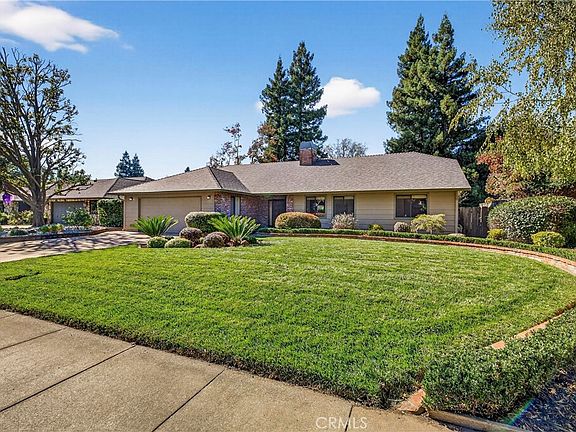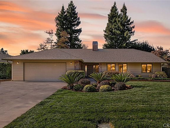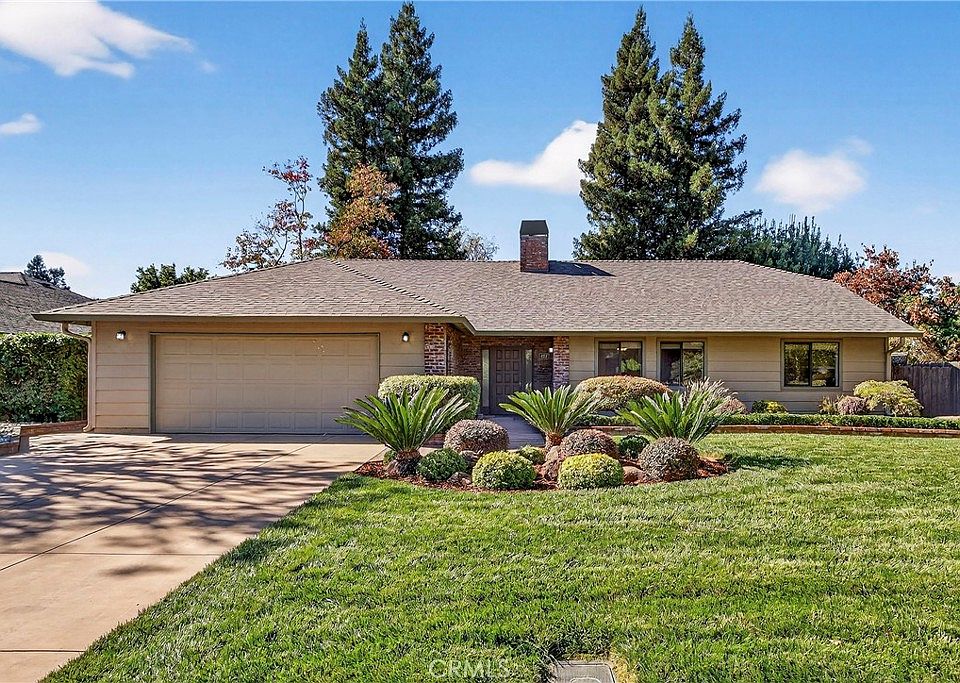 Beautifully cared for home in a desirable cul-de-sac within the peaceful Walnut Woods Subdivision. Immediately you notice the beautifully landscaped front yard and space for parking. As you enter the home you find that the family room has a wood fireplace and a stunning arched and beamed wooded ceiling. The skylights, French doors and large windows provide ample natural light. From both the Family room and dining area you look out to a gorgeous and maturely landscaped backyard haven. Also in the family room you will find a built-in storage bookshelf, with a bench seat. The kitchen has some updated touches with newer counter tops, a gas range, and an eating bar. The primary bedroom suite also has a arched ceiling, generous walk-in closet and access to the backyard. Sitting on your back patio is pure joy! From the thick, dark green lawn, to the beautiful bushes and amazing mature trees, it is incredibly peaceful and also a fantastic place for gatherings and fun. Love to garden? There is plenty of space and the awesome west Chico soil. This home has custom built characteristics, is spacious yet feels tremendously cozy. The HVAC system was replaced in 2024, there is a septic and pest clearance and the brand new roof and fresh interior paint throughout, create the perfect shell and canvas to make this home your own. Make an appointment with your favorite Realtor today and come see the possibilities.