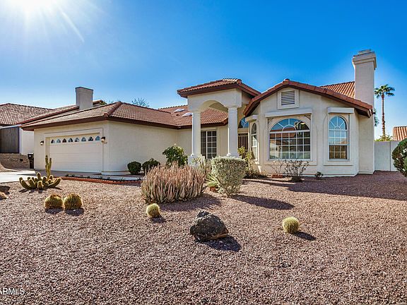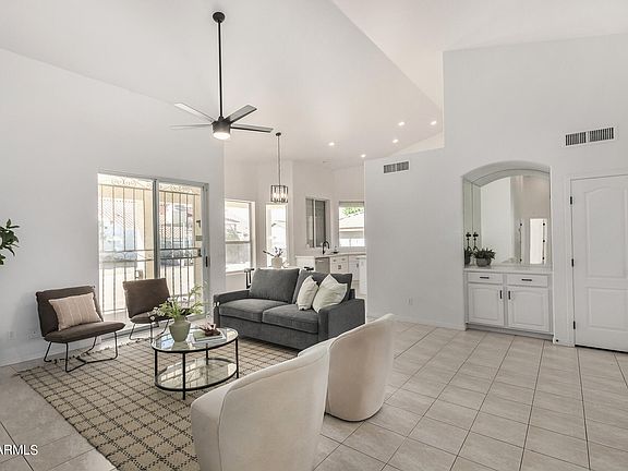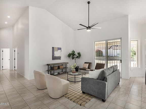 Pride of ownership is shown in this stunning 4-bedroom residence in Phoenix! Discover a delightful interior showcasing fresh soothing palette, striking vaulted ceilings, neutral tile floor, & arched doorways. You will find a charming fireplace perfect for entertaining during the upcoming winter! The beautiful kitchen boasts white shaker cabinets adorned with crown moulding, quartz counters, sparkling stainless steel appliances, a pantry, & a convenient center island. Double doors open to the primary bedroom comprised of soft carpet in all the right places, a private bathroom with dual vanities, & a walk-in closet. Host memorable gatherings in the spacious backyard offering a covered patio & an extended seating area great for BBQs! This beauty won't disappoint!