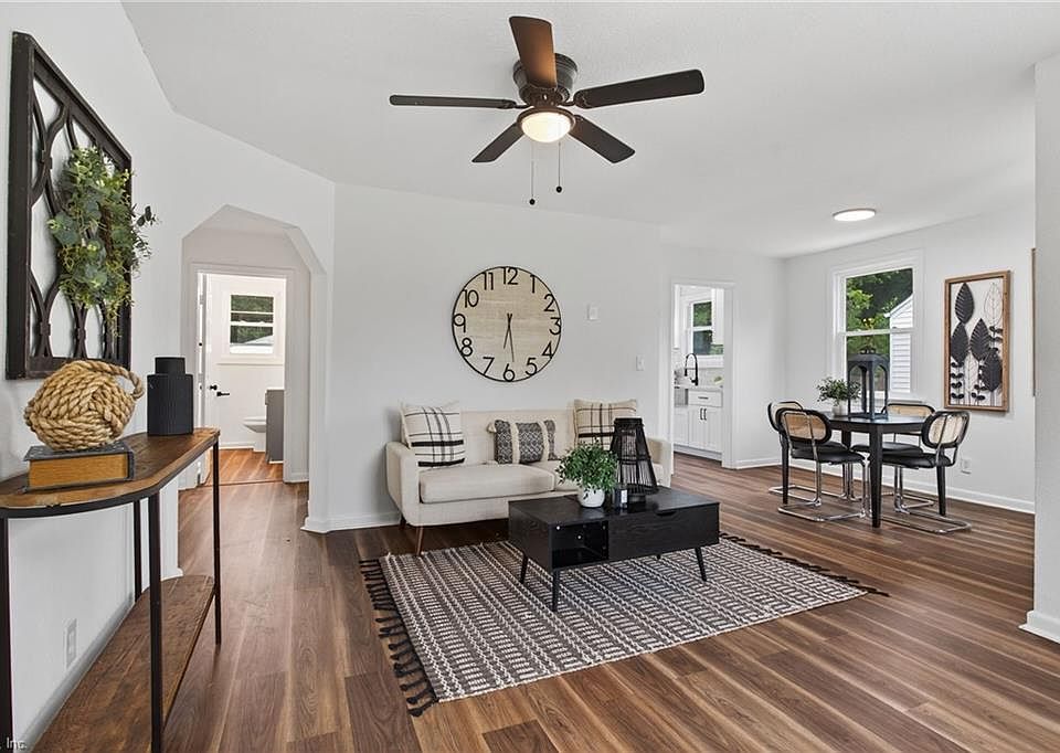 Come see this charming 3 bedroom, 2 full bath Cape Cod with complete interior and exterior remodel! This home features a beautifully updated galley kitchen with new quartz countertops with lots of storage and counter depth; a new French-door refrigerator and new appliances. Primary bedroom with ensuite bath! New laminate flooring! Fresh paint throughout! Updated fixtures! Tankless gas water heater! Covered front porch for relaxing! Large fenced-in backyard with detached 1-car garage! 1 mile from the Chesapeake Bay and close proximity to naval bases!