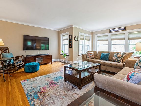 Beautiful brick 2-flat on a 39 x 155 lot on tree-lined Hull Terrace, in the charming Oakton Historic District. Current owner made massive improvements to the property, including adding GF heat/central air and finishing the lower level to create a 3 bedroom/3 bath duplexed owners' unit with family room. Units offer spacious, south-facing living rooms with decorative fireplaces flanked by bookshelves. Large separate dining rooms, huge room sizes throughout. Hardwood floors on main level and upper unit, carpeted lower level. 9-room owners unit features newer white kitchen with quartz counters and high-end stainless appliances (Electrolux range, Bosch dishwasher, GE Cafe French door refrigerator), 3 updated bathrooms, and 3 bedrooms with walk-in closets. Upper unit offers 2 bedrooms plus den/1 bath, with long-term tenant in place. Each floor features 1600 square feet of living space. Lovely fenced and landscaped backyard, extended deck off owners' unit plus upper deck, two-car garage with parking pad for 3rd car. Close to schools, transportation, James Park, and downtown Evanston.