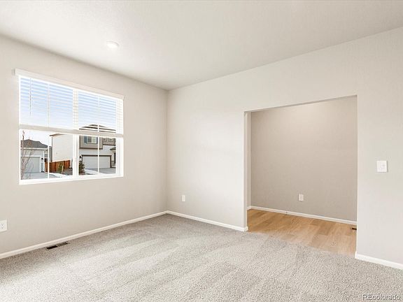 The Chatfield offers a thoughtfully designed layout perfect for modern living. Upon entering, a versatile flex space greets you at the front of the home, ideal for a home office or additional living area. The open flow leads seamlessly into the spacious great room, creating an inviting atmosphere for relaxation or entertaining. This two-story home features four bedrooms, providing ample space for the entire family. The home includes two full bathrooms, a half bathroom, a three-bay garage, and an unfinished basement for future customization. Renowned for quality construction and innovative design, Meritage Homes offers unparalleled energy efficiency with features such as advanced spray foam insulation, ensuring comfort and savings year-round. With our all-inclusive and transparent pricing, all designer upgrades are included, eliminating any surprises. Discover a truly move-in ready home that reflects Meritage Homes' commitment to excellence and sustainability. With approximately 2,562 square feet, The Chatfield is located in Hidden Valley Farm, a vibrant new community in the growing town of Severance. Residents can enjoy pocket parks, easy access to hiking and biking trails, and close proximity to retail destinations. Conveniently situated near Fort Collins, Windsor, and Greeley, Hidden Valley Farm offers endless opportunities for adventure and lifestyle convenience.