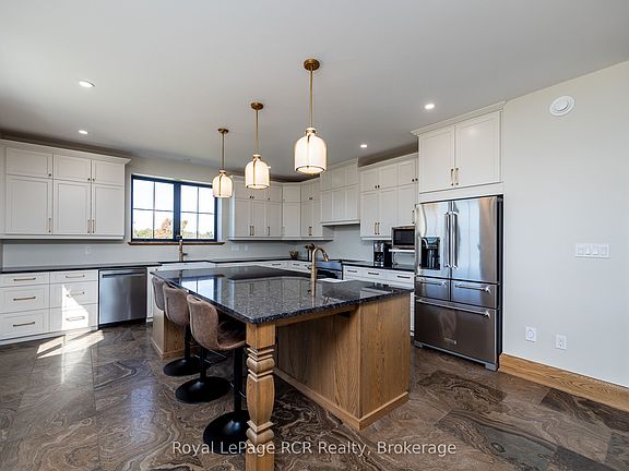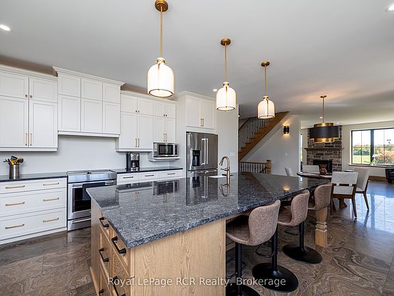 Impressive custom built 2 storey stone home on 65 acres. An abundance of natural light flows through the oversized windows and doors with country views from every room. While the covered front porch leads to the foyer, the mudroom entrance is 11x18 with lots of storage, laundry area and powder room. As you enter the living areas, the quality of craftsmanship is evident in the 8 solid oak doors, trim and staircase. The spacious kitchen features lots of cabinetry with a great working layout, an oversized island with 2nd sink and commercial grade appliances. The dining area is open to the living room where you'll find a wood burning fireplace. On the second level there is a large landing suitable for an office or sitting area (12x17). In addition to the full bathroom and 2 spacious bedrooms you will find a luxury suite that includes a spa-like ensuite and walk-in closet. The finished lower level is complete with a family room, office/den, gym/bedroom, 3 piece bath and cold storage room. Built in 2024, this custom home features the highest quality in construction, finishes and comfort. ICF construction from the footings to the roof, in-floor heat in basement, forced air propane and a/c, extensive built-ins in closets, and so much more. Lots to explore on the land including 2 ponds. This exceptional property is sure to impress.