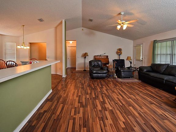 Beautiful brick home on Cul-de-Sac with a beautiful lake view and mature citrus trees. Brand new stainless steel appliances. Catheral ceiling and screened porch. Roof 8 years old, AC 4 years old. Laminate flooring in great room and master bedroom. Split floor plan. Large backyard!!!!