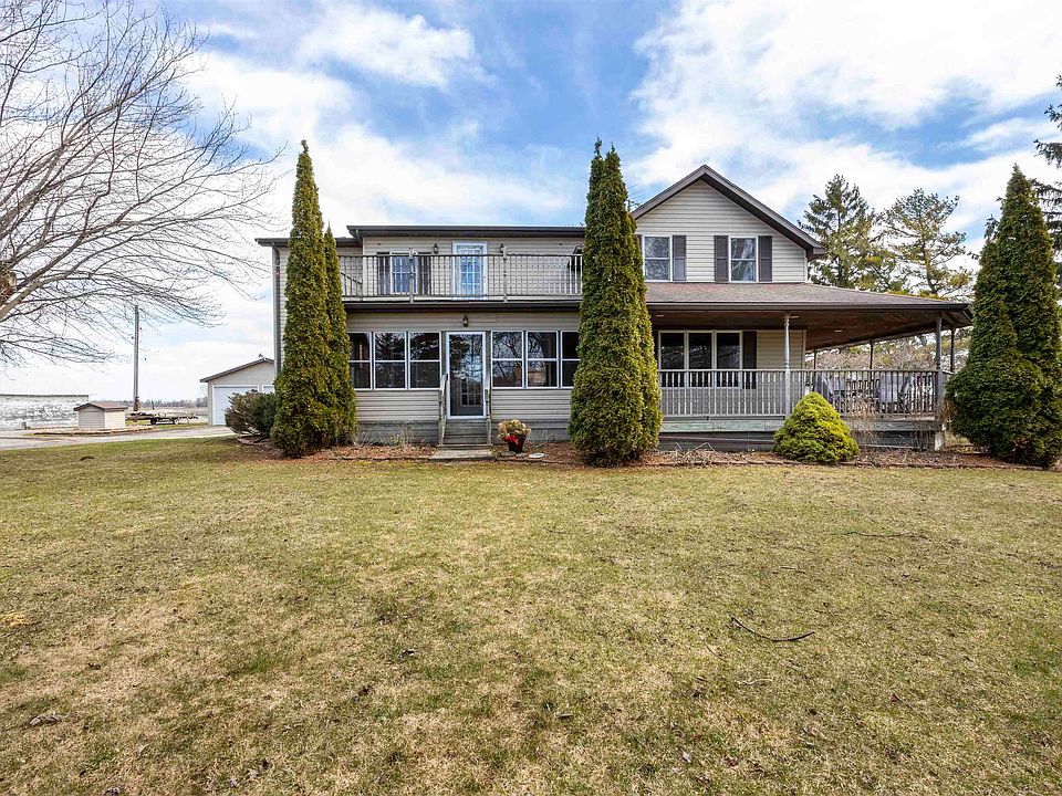 Welcome to this 4 bedroom, 2 bathroom, 1891 sq.ft. farm home with large wrap around porch, 7 car garage that sits on 1.25 acres. Original hardwood floors on most of the main floor. Open concept kitchen/dining/living room. There is a sunroom, private master balcony and large deck off the back.