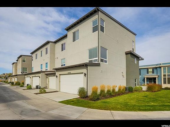 Northshore is one of the most desirable Townhomes in the Daybreak Community. This immaculate tucked away, modern row-end unit sits just north of Oquirrh Lake with breathtaking views of Salt Lake's greatest mountainscapes. This unit offers an open floor plan lit up from windows all around. The quartz counter tops, stainless steel appliances, durable laminate, high ceilings, and spacious living spaces are begging for dinners around the table, game nights, and hosting large get togethers. The downstairs is framed and plumbed for an additional bedroom/bathroom ensuite adding even more room and value to the property.