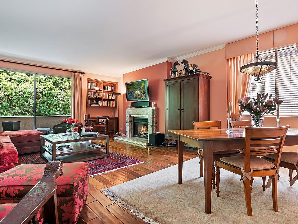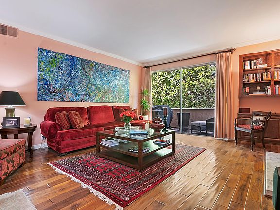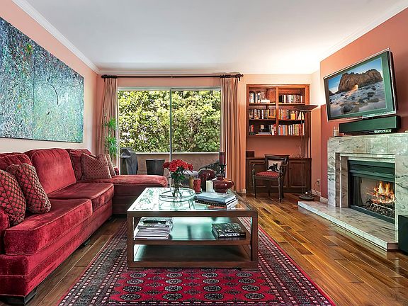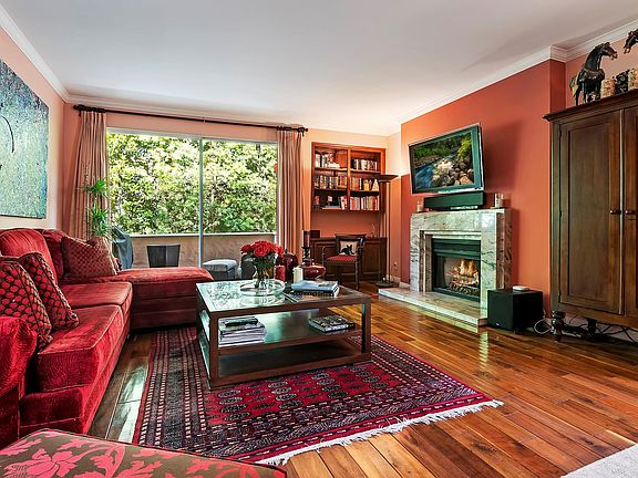 Beautiful 2 bed/2.5 bath corner unit with balcony overlooking greenery with designer finishes. Formal entry with marble flooring, builtins and updated powder room leads to living room with walnut hardwood flooring fireplace, crown molding, built-ins and private balcony. Spacious dining room opens to updated sun-filled kitchen with stainless steel appliances including double ovens & gas range, black granite countertops & flower box window over sink. Charming breakfast area in kitchen. 2 bedrooms on opposite sides of unit, both with en-suite bathroom. Primary bedroom overlooking greenery with custom walk-in closet and wall of built-ins. Primary remodeled bathroom w/ granite & glass tiled finishes, dual basins, separate bath & shower. 2nd bedroom w/ wall of custom built-in closets, and ensuite full bathroom w/ tile finishes. Sidexside laundry area with storage. Earthquake insurance included in HOA dues, 2 tandem secured parking, pets ok. Close proximity to Rancho Park Golf & Recreation, Century City Mall, UCLA, Pico Blvd. retail & restaurants & the new Google Campus. Westwood Charter School.