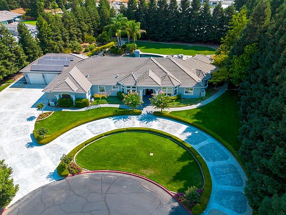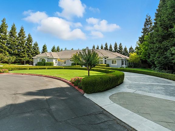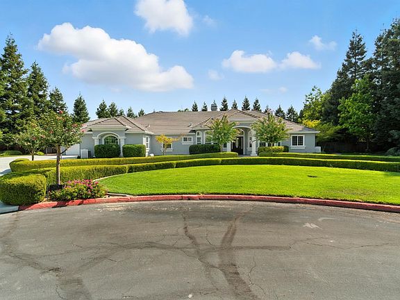 Single-story home on 1 acre lot in prestigious Black Oak Estates surrounded by 65 redwood trees. Solid cherry, beveled glass front door, solid beech wood floors with walnut inlay, living room includes built-in bookcases & wood burning fireplace, dining room has high ceilings, pillars, crystal chandelier & bay windows, kitchen has cherry cabinets, granite countertops, pantry & breakfast nook, all electric KitchenAid appliances with double oven, refrigerator, stove top, microwave & dishwasher. Bar area has granite counter tops, cherry cabinets, wine cooler, & refrigerator, family/entertainment room with a gas fireplace, custom built bookcase & TV entertainment center & French doors to pool & garden. Guest suite includes bedroom, game room & bathroom with access to pool. Game room includes pool table, gas fireplace, bathroom has cherry cabinets, marble floor, countertop, & shower. North wing includes three bedrooms-master suite includes a gas fireplace surrounded by white marble, large walk-in closet, French doors to the pool & backyard, master bath has dual sinks, surrounded by white marble, cherry cabinets, heated marble floor and large soaking tub. Two additional bathrooms include marble, granite, tile & cherry cabinets.
